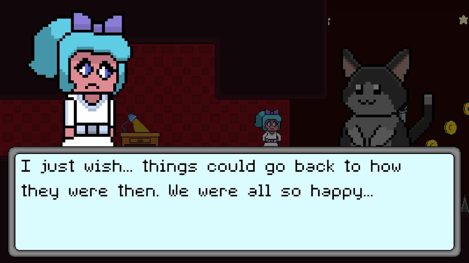 You are in control of a young lady in a troubled household. Unable to find the strength to stand up to her father, she goes to sleep, and ends up in a strange dream world. Here, she is tasked to strengthen her resolve in order to set things right.